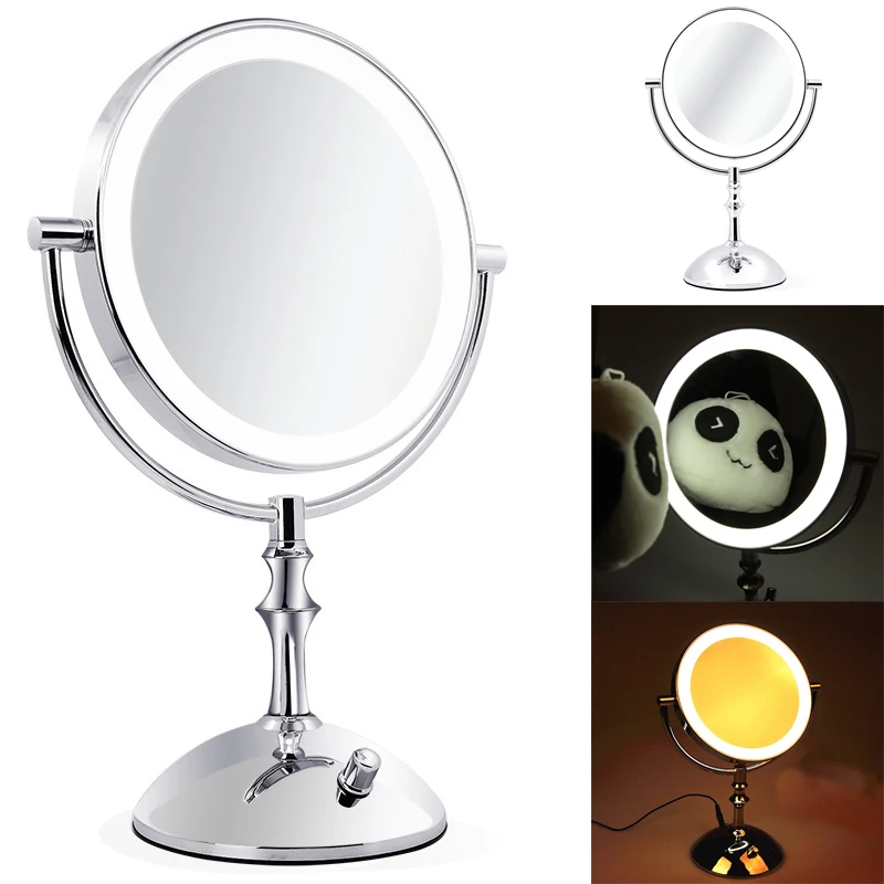 Battery USB LED Light Touch Dimming Double-sided Makeup Mirror 3-10 Times Magnifying Glass Bath Mir