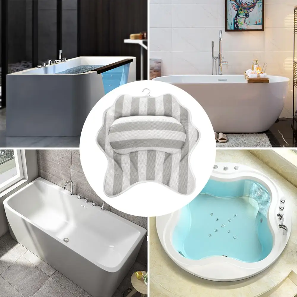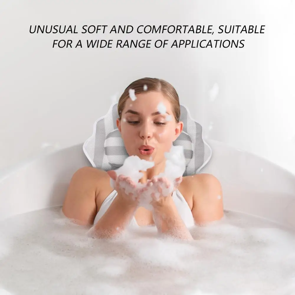 Bathroom Pillow Neck Support Anti-Slip Belt 6 Powerful Suction Cups 3D Mesh Mold Design Bath Pillow