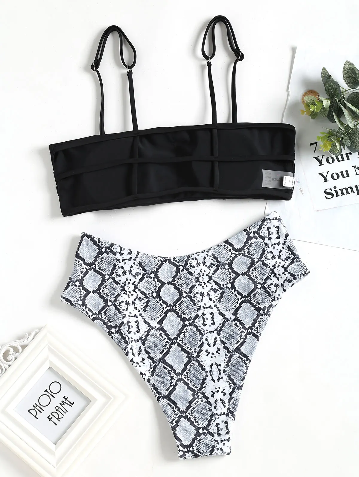BEST QUALITY ZAFUL High Waisted Bikini Snakeskin Print High Leg Ladder Cut Bikini Swimwear High Cut Bathing Suit