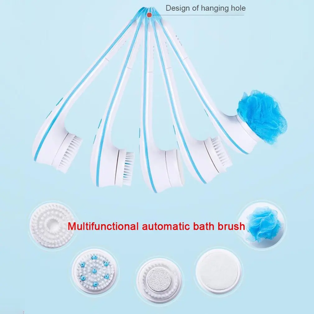 5 In 1 Electric Bath Shower Brush Exfoliation Spin Spa Massage Body Clean Brush Electric Massage Mu