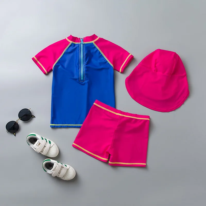 Girls Swimsuit Two Pieces Separate Bathing Suits Short Sleeve Rose Red UPF50+ Anti-UV Children Beac
