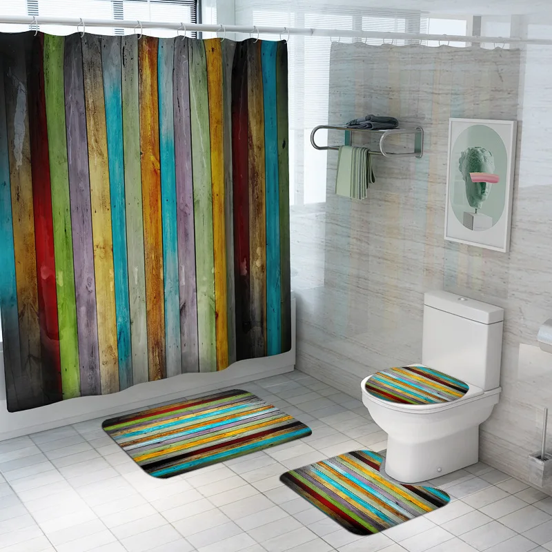Pattern board Print Shower Curtain 4 Piece Carpet Cover Toilet Cover Bath Mat Pad Set Bathroom Curt