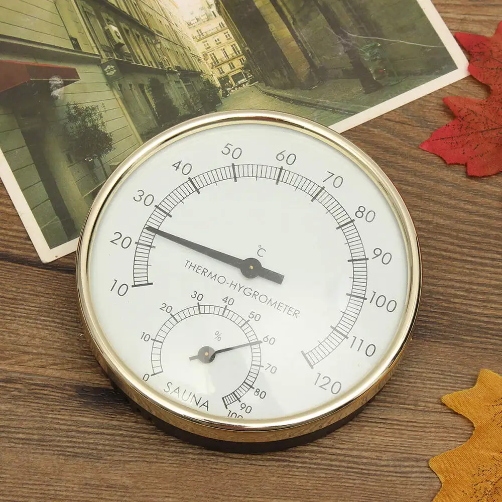 Temperature Humidity Meter Stainless Steel Edge Sauna Room -0°C~120°C Thermometer Hygrometer Cloc